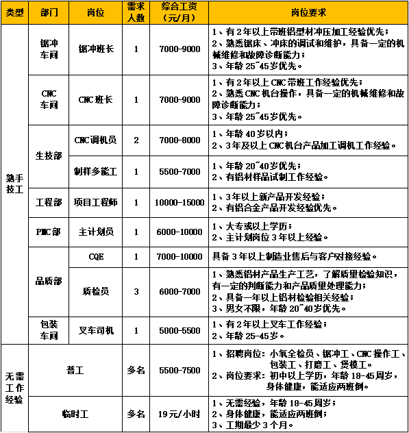 因生產(chǎn)發(fā)展需要,誠聘以下崗位: